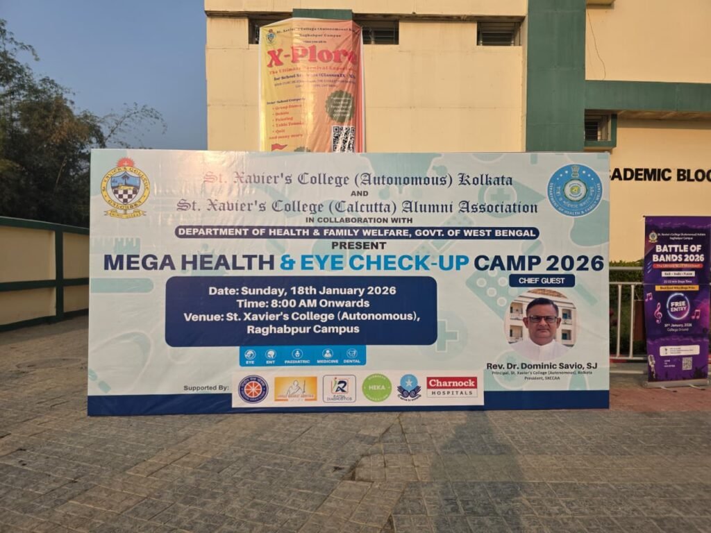 St Xavier’s College (Autonomous) Kolkota along with St Xavier’s College (Calcutta) Alumni Association (SXCCAA) Kolkota in collaboration with Department of Health & Family Welfare, Government of West Bengal conducted a Mega Health & Eye Checkup Camp on 18th January 2026 at St Xavier’s College (Autonomous) Raghabpur Campus.
